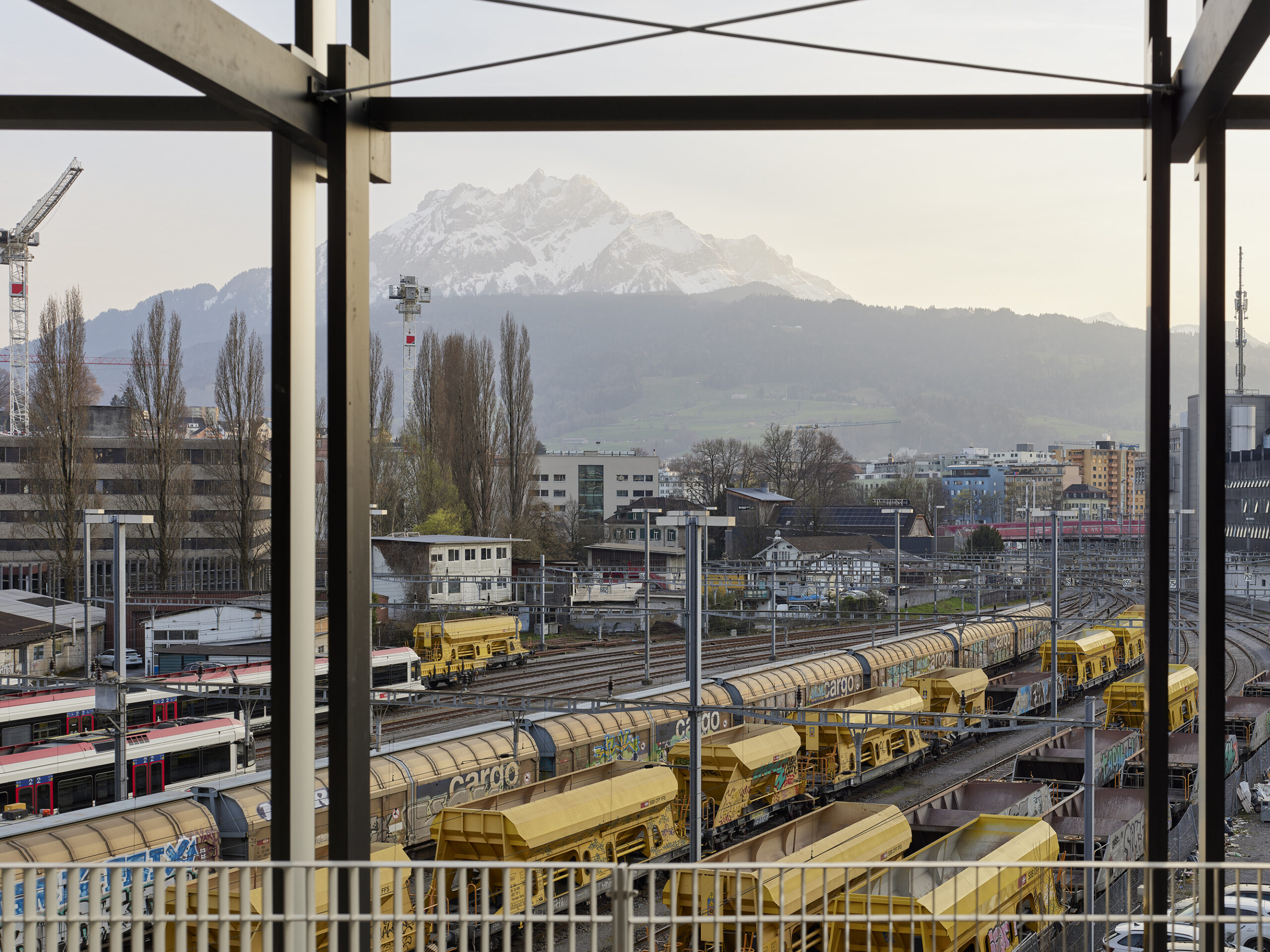 Adresse: Der Gebäudeteil C ist auf die geplante Nutzung des Grossmieters ausgelegt. Ein ausladendes Vordach und ein Rückzug der Fassade markieren den Haupteingang des Single Tenants an der Bürgenstrasse. Von aussen ist der grosszügige Wartebereich für Besucher einsehbar. Ein repräsentativer Empfangs-Desk und Zutrittssysteme vermitteln zwischen internem und externem Bereich.